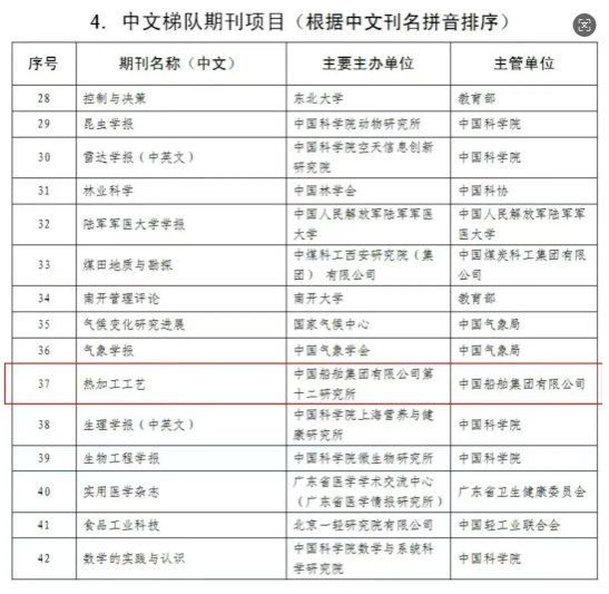 《熱加工工藝》能夠榜上有名,也是中國船舶行業(yè)與中國船舶集團為學術研究陣地建設貢獻了強有力的力量。