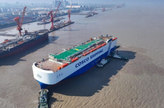12月2日,外高橋造船1號船塢迎來8600車液化天然氣(LNG)雙燃料動(dòng)力汽車運(yùn)輸船(PCTC)和11.4萬噸阿芙拉型成品油輪的同日出塢,不僅達(dá)成首制PCTC船塢周期100天既定目標(biāo),在民船建造領(lǐng)域繼續(xù)保持“加速度”,而且也標(biāo)志著該公司新船型和常規(guī)船型同塢同節(jié)拍生產(chǎn)取得新突破。
