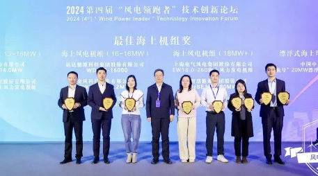 開年即“開跑”,展示新“風(fēng)貌”。1月9日, 2024(第四屆)“風(fēng)電領(lǐng)跑者”技術(shù)創(chuàng)新論壇暨頒獎(jiǎng)盛典在北京成功舉行,活動(dòng)共評(píng)選出“風(fēng)電領(lǐng)跑者”最佳陸上機(jī)組獎(jiǎng)、最佳海上機(jī)組獎(jiǎng)、最佳零部件產(chǎn)品獎(jiǎng)、最佳服務(wù)產(chǎn)品獎(jiǎng)和年度最佳創(chuàng)新獎(jiǎng)五類大獎(jiǎng),中國(guó)船舶集團(tuán)旗下中船科技子公司中船海裝H305-25MW海上風(fēng)電機(jī)組、H220-6.XMW陸上風(fēng)電機(jī)組憑借其創(chuàng)新設(shè)計(jì)和優(yōu)異性能分別斬獲了“最佳海上機(jī)組獎(jiǎng)”和“最佳陸上機(jī)組獎(jiǎng)”。