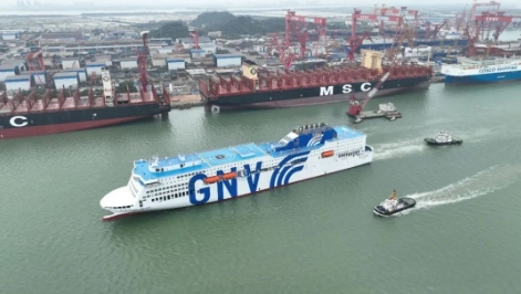 4月21日,中船集團旗下廣船國際聯(lián)合中船貿(mào)易建造的7000車液化天然氣(LNG)雙燃料動力汽車運輸船“漢江口”號舉行命名交船儀式。據(jù)了解,該船交付后,首航次將從上海裝載國產(chǎn)汽車奔赴智利、秘魯、危地馬拉等國家。