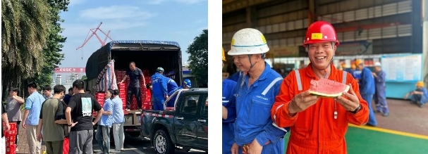廣船國際始終將員工身心健康與安全生產(chǎn)放在首位,用科學(xué)調(diào)度、貼心保障的“組合拳”,撐起“清涼保護(hù)傘”。該公司向全體工會會員發(fā)放慰問清涼飲料,做好防暑降溫工作,保障員工健康;所屬文沖修造常態(tài)化開展“送清涼”活動,各部門自發(fā)熬煮糖水、派發(fā)西瓜,讓“清涼”直抵崗位、暖到心間。