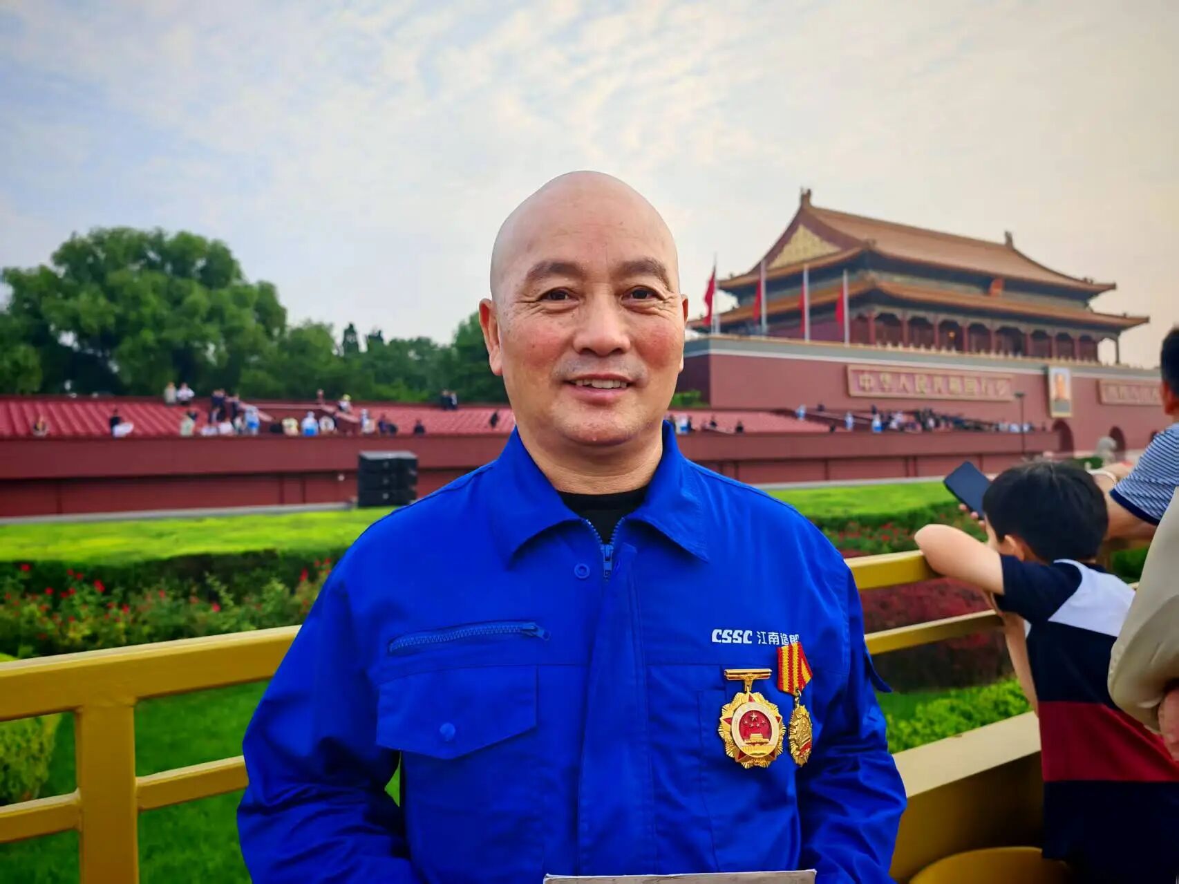 當(dāng)清晨的第一縷陽(yáng)光灑向天安門廣場(chǎng),我仿佛看到了三十多年前那個(gè)第一次走進(jìn)江南造船廠的青年學(xué)徒工??吹桨装l(fā)蒼蒼參與抗戰(zhàn)的老英雄們舉手敬禮的瞬間,我的眼眶濕潤(rùn)了。我的師傅——江南造船第一代“焊王”劉維新常告訴我,焊接如做人,要穩(wěn)要準(zhǔn)要扎實(shí)??箲?zhàn)老英雄們用生命捍衛(wèi)我們的國(guó)土,我們焊工用焊槍焊接國(guó)家的鋼鐵長(zhǎng)城。不同的戰(zhàn)場(chǎng),同樣的堅(jiān)守;不同的工具,同樣的匠心。