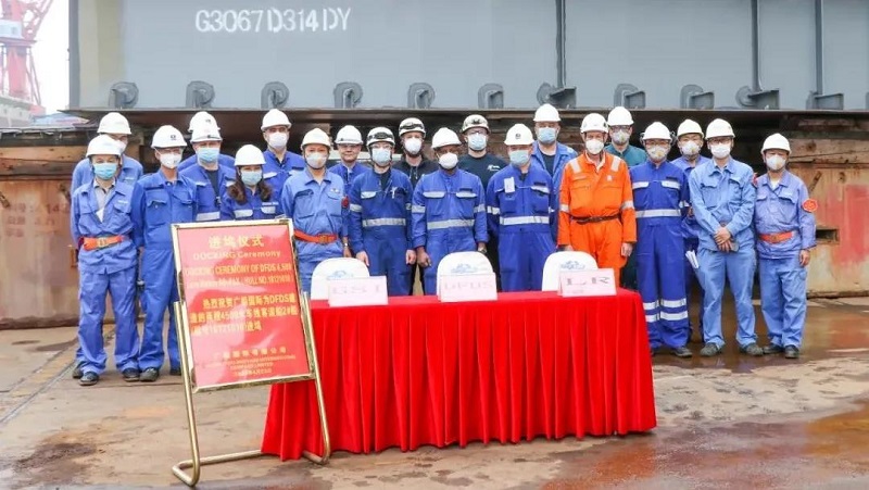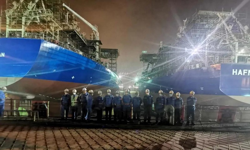????進(jìn)塢后,兩艘船將進(jìn)行主船體搭載包括主要設(shè)備吊裝、各系統(tǒng)完整及艙室報驗等工作,為吊裝、拼接、合攏做準(zhǔn)備。