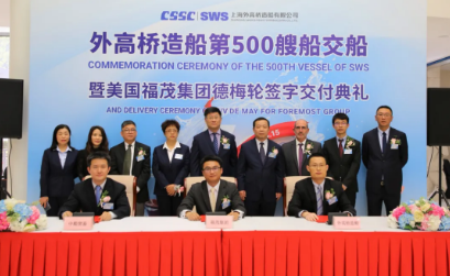 4月15日,由中國船舶集團旗下外高橋造船自主開發(fā)、設計和建造的21萬噸紐卡斯爾型散貨船“德梅”號交付美國福茂集團。這是外高橋造船自2003年交付第一艘商品船以來,精心出品的第500艘船,完工總量累計8968萬載重噸,年均27.8艘/498.2萬載重噸,位居中國第一,躋身全球前列。