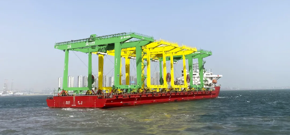 近日,武漢船機(jī)海西重機(jī)公司為天津港北疆港區(qū)C段智能化集裝箱碼頭一期工程承制的第五批4臺(tái)自動(dòng)化軌道吊滾裝發(fā)往天津港。