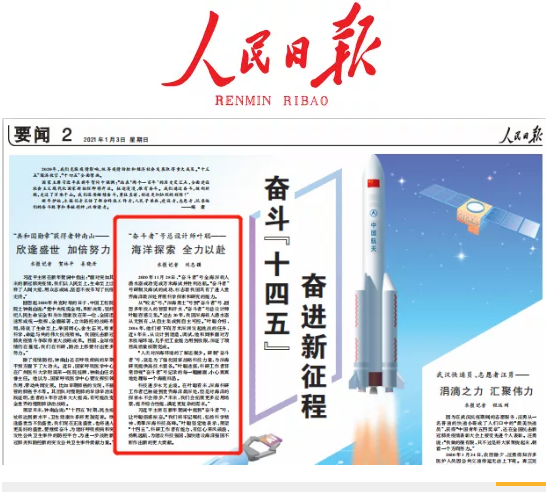 1月3日,人民日?qǐng)?bào)在要聞二版【奮斗“十四五” 奮進(jìn)新征程】專(zhuān)題報(bào)道中,以“海洋探索 全力以赴”為題刊發(fā)了對(duì)中國(guó)船舶集團(tuán)七〇二所副所長(zhǎng)“奮斗者”號(hào)總設(shè)計(jì)師葉聰?shù)膶?zhuān)訪(fǎng)。