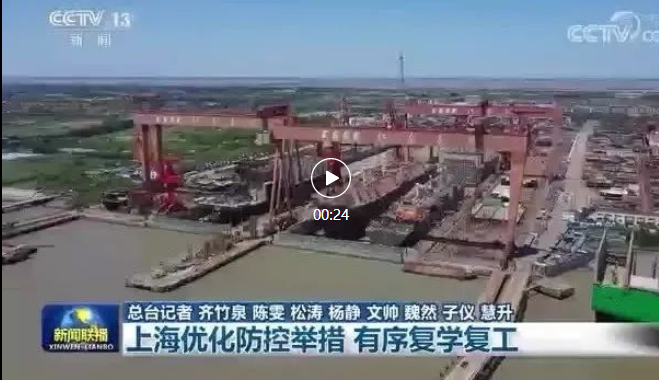 新聞聯(lián)播聚焦上海優(yōu)化防控舉措,加快推動(dòng)復(fù)工復(fù)產(chǎn),點(diǎn)贊中國(guó)船舶集團(tuán)旗下三大船企都實(shí)現(xiàn)復(fù)工復(fù)產(chǎn)。 | 來(lái) 源:集團(tuán)公司黨群工作部 | 責(zé) 編:寧湘舒 | 校 對(duì):王 琦 | 審 核:項(xiàng) 麗/甘豐錄