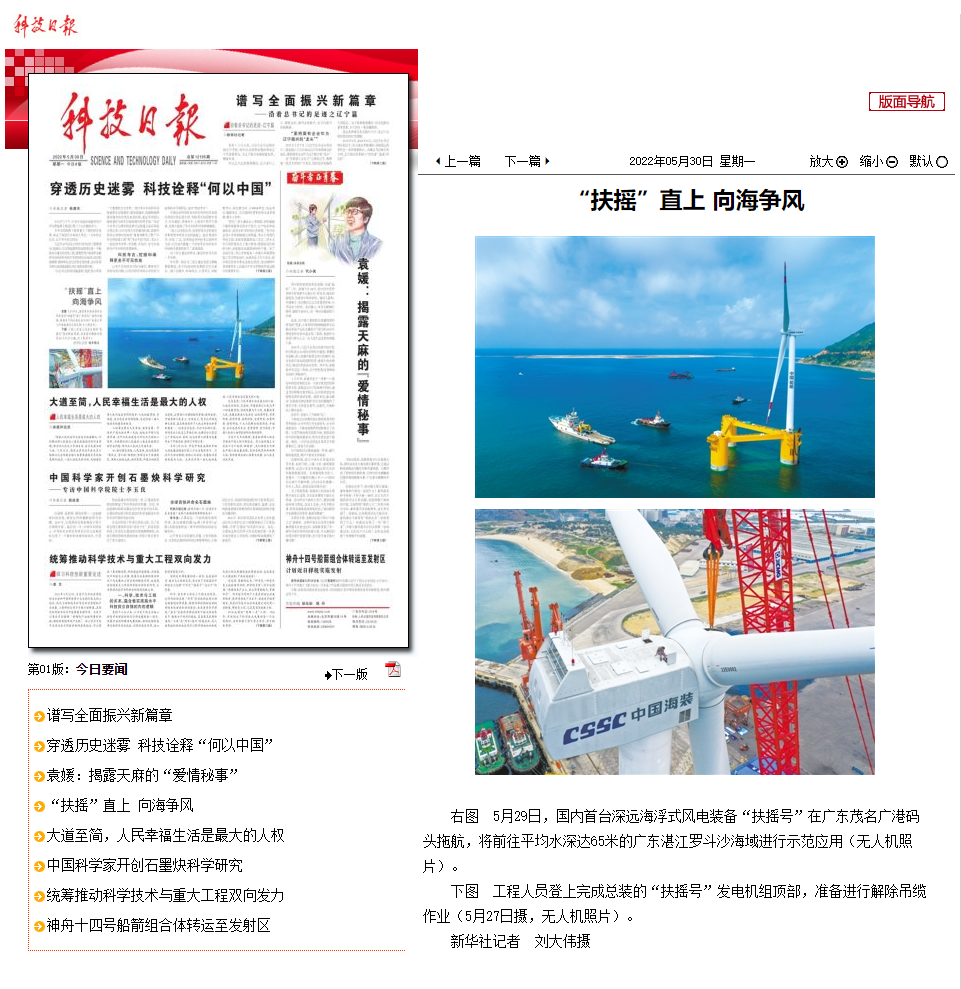 5月29日,中國船舶集團(tuán)旗下中國海裝牽頭研制的國內(nèi)首臺深遠(yuǎn)海浮式風(fēng)電裝備——“扶搖號”從廣東茂名碼頭起航,前往平均水深65米的廣東湛江附近海域投入示范應(yīng)用。