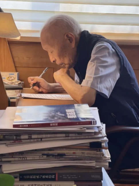 我是記者江曉晨。92歲的潘鏡芙左眼幾乎失去了感光能力,他把工作臺放在陽臺,這里采光好,方便他讀書寫字。下午的陽光透過玻璃,打在書本上。潘鏡芙向前探著身,平靜而專注,大約他還想離書本更近一些,看得再仔細一些,這樣才能趕上不斷移行的陽光,趕上嘀嗒疾走的時間。