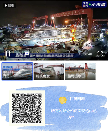 別急,央視新聞還為您準(zhǔn)備了近14個(gè)小時(shí)的超長(zhǎng)直播,回看一起見證我國(guó)首艘大型郵輪起浮全過程!