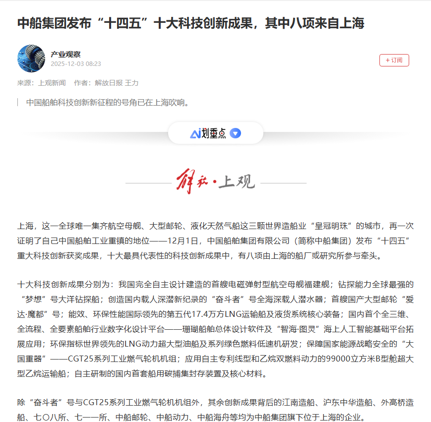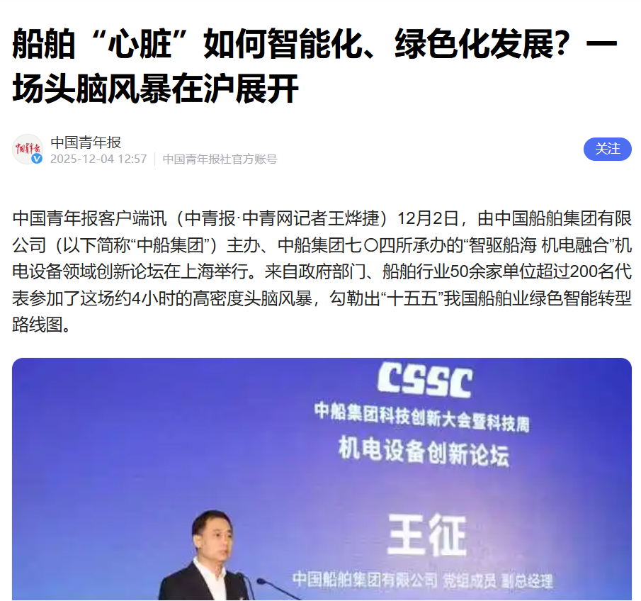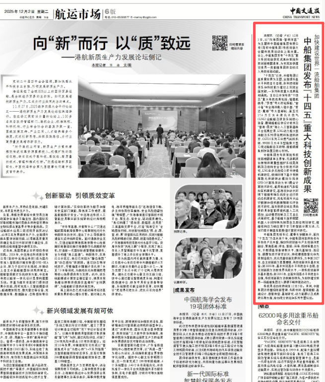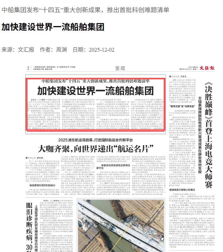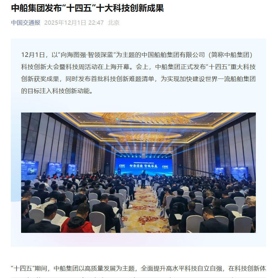 此次大會聚焦“向海圖強·智領(lǐng)深藍”主題,系統(tǒng)總結(jié)了中船集團“十四五”期間科技創(chuàng)新工作及重大科技創(chuàng)新成果,謀劃“十五五”科技發(fā)展規(guī)劃,引發(fā)中央、行業(yè)及地方媒體的廣泛關(guān)注報道。