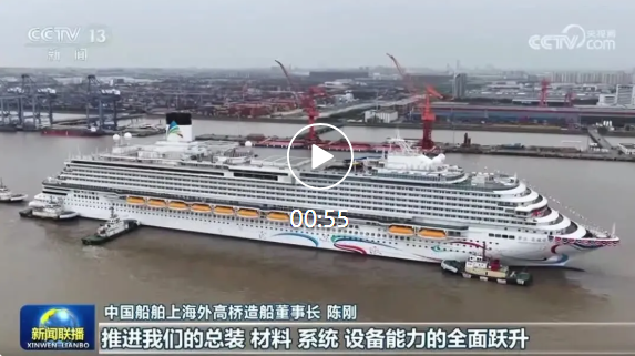 3月20日,央視《新聞聯(lián)播》欄目報道第二艘國產(chǎn)大型郵輪“愛達·花城號”順利出塢盛況。