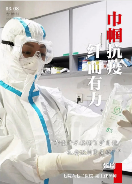 ????張琦,現(xiàn)為六七二醫(yī)院感染三科臨時(shí)黨支部黨員,感染三科護(hù)士長。她在1月26日,湖北六七二中西醫(yī)結(jié)合骨科醫(yī)院被征為“新冠肺炎”定點(diǎn)收治醫(yī)院時(shí),第一時(shí)間寫下請戰(zhàn)書上陣一線。雖然骨折尚未痊愈,仍帶領(lǐng)全科護(hù)士投入到緊張而又忙碌的病房改造準(zhǔn)備工作中,搬運(yùn)設(shè)備、物資,常常加班到深夜,以實(shí)際行動(dòng)展現(xiàn)了醫(yī)者大美和巾幗大愛的高尚品格及別樣風(fēng)采!
