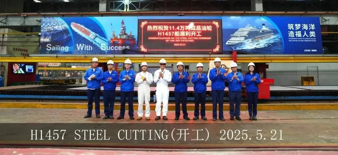 5月21日,外高橋造船為土耳其YASA公司建造的11.4萬噸阿芙拉型油船H1457船開工儀式順利舉行。目前,各項(xiàng)生產(chǎn)準(zhǔn)備工作均在按計(jì)劃落實(shí)。